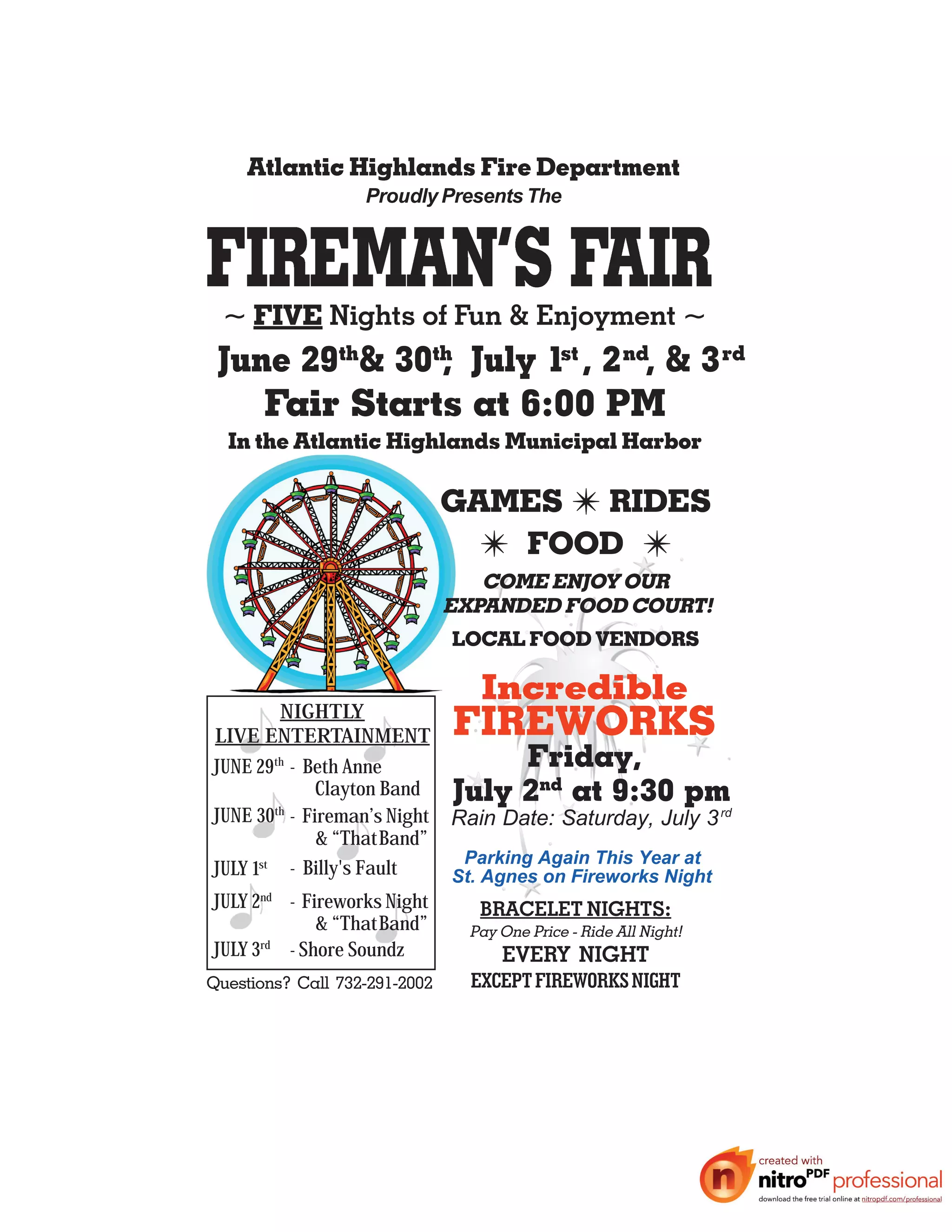 Atlantic Highlands Fireman's Fair & Independence Week Celebration PDF, Join thunder 106 at the atlantic highlands fireman's fair at municipal harbor (2 simon lake drive) from 7 pm to 9 pm to enjoy delicious cotton candy,.